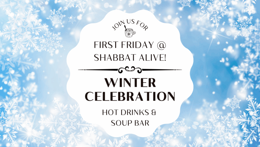 We’ll meet in the Slater Conference Room (or on Zoom) from 12:45 to 1:45 each Shabbat.